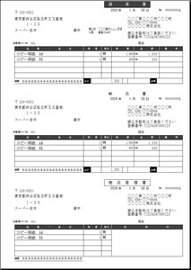 〇現在使用されている伝票印字 有料で対応いたします。 〇軽減税率に対応 (Ver3.02から コクヨ 軽減税対応伝票に対応しました) チェーンストア伝票、百貨店店伝票、送り状印刷にはドットプリンタが必要です。 |