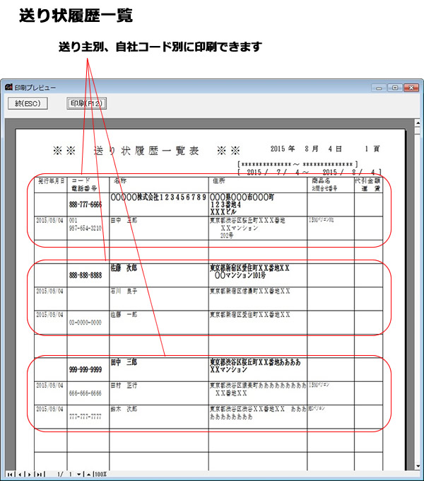 ○送り状発行履歴を印刷、CSVの書出が可能(販売促進、経費管理)