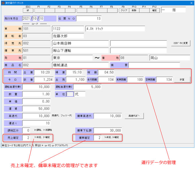 運送業の売上傭車経費の管理 運賃未確定処理、請求明細書や運行管理帳票印刷