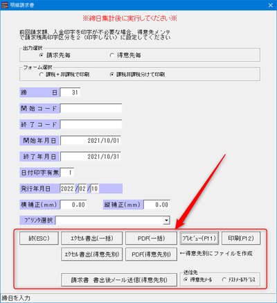 請求明細書には、エクセル書出 PDFを メールに添付する機能 があります。 100日間はフリーで使用できます。 100日後は ライセンス登録(有料)するとこの制限は
