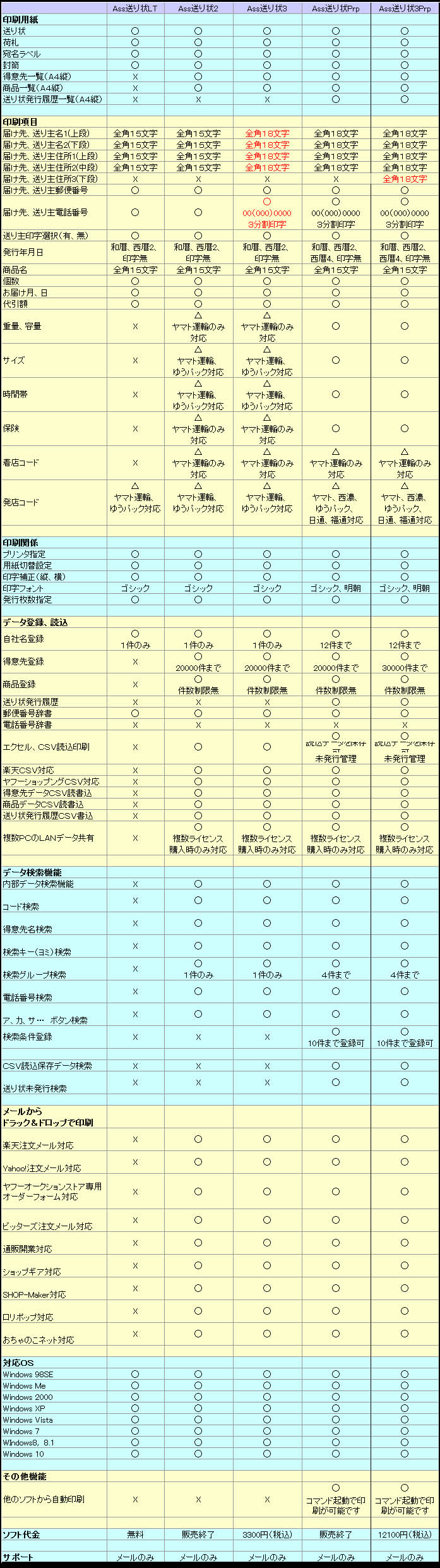 Ass送り状 機能比較